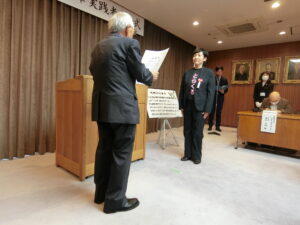 (理事長が受賞する様子)