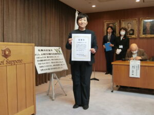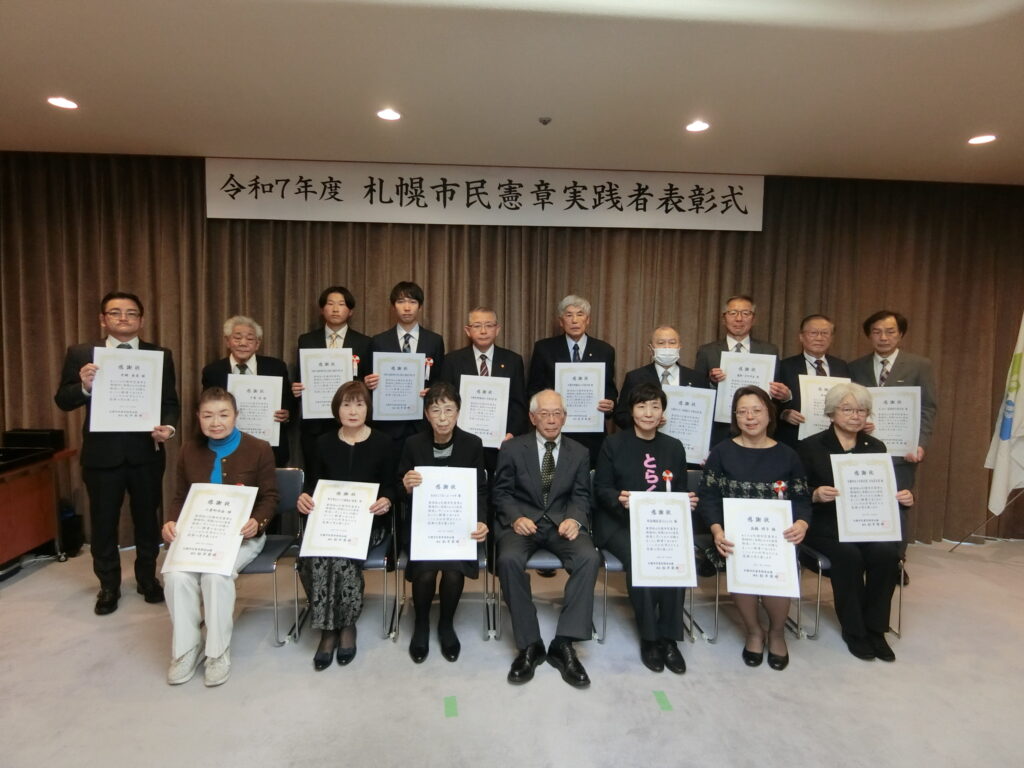 令和7年11月28日、令和7年度札幌市民憲章実践者表彰式が開催され、市民憲章の実践活動を積極的に行なっている団体として社会福祉法人とらくろが表彰を受けました。